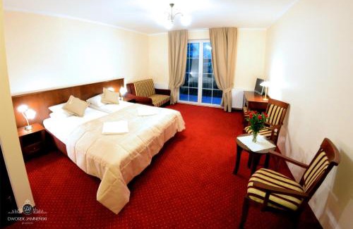 Offering a barbecue and terrace, Dworek Jamneński is located in Łazy in the West Pomerania Region, 656 feet from Lake Jamno and 1640 feet from the beach on the Baltic Sea. The resort has a sun terrace and views of the city, and guests can enjoy a meal at the restaurant or a drink at the bar. Free WiFi is offered throughout the property and free private parking is available on site. Each room includes a flat-screen TV and a fridge. All rooms have a private bathroom. You will find a 24-hour front desk at the property. Koszalin is 7.5 mi from Dworek Jamneński, while Mielno is 6.8 mi away.