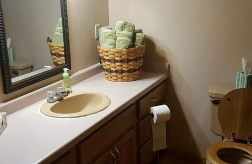 This is a perfect place for any EAA Airventure traveller. We are located 3 miles from the grounds. Spend your days out at EAA then relax back at this secluded space. The property includes 4 bedrooms and 3 full bathrooms. 3 queen beds and 1 loft full size bed. There is an outside porch as well as a sunroom for lounging. Gas grill, fire pit, and 2 car garage all for your use. Pets will also be considered with a deposit. Free Wi-Fi and Roku streaming device. Make this place your home while you are away from yours. This is the perfect place to spend your night while rejuvenating after your fun days at EAA. The property is private and secluded yet only minutes away from Target, Aldi, grocery stores, and the Airventure grounds. The house is located on 1.1 acre of land and has ample parking. If sharing with friends there is also an additional entrance to finished basement from the garage. The bedrooms are very spacious. 3 full bathrooms on site. Two bathrooms with stand up showers and 1 with a tub and shower.