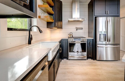 Eagle Bluff Cabin is a NEW, architecturally-stunning and family-owned, lakefront cabin with magnificent views of Greers Ferry Lake. This luxury cabin features two bedrooms and one bathroom downstairs, with a large sleeping loft and large bathroom upstairs. We think attention to details matter… whether in the custom cabin design, or in the furnishings and décor selected throughout, or in the thoughtful amenities provided to our guests.