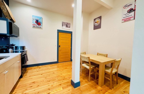 * Fully equipped kitchen featuring quartz countertops with seating at a kitchen table for 4.