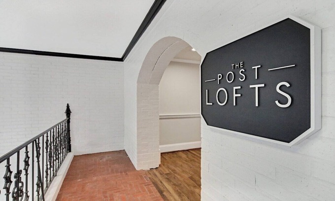 Parking will be available in the paved parking lot on South Walnut Street or behind the building on South College Street. Guests will enter the stairway under the arch on South Walnut Street, where they will enter into the lobby of The Post Lofts. You can also access the lobby by walking past the stairs and using the elevator. Unit #8 will be located to the left of the elevator on the second floor.