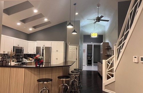 This lakefront home is designed for comfort and luxury, with high ceilings and skylights that flood the space with natural light, creating an inviting and spacious atmosphere. The huge pier and dock are perfect for fishing or watching wildlife, while the shallow waters near the pier are ideal for swimming. The modern deck and upper deck provide ample space for outdoor entertaining, and the fire pits on the main deck and near the pier create a cozy ambiance for evening bonfires. Whether you’re kayaking on Eagle Lake, relaxing in the Jacuzzi, or exploring nearby wineries and breweries, this retreat offers something for everyone.