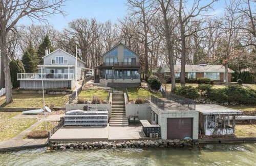 Escape to this stunning 3-bedroom, 4-bathroom lakefront home on the spring-fed Eagle Lake, a 390-acre all-sports lake perfect for swimming, fishing, & boating. Located in charming Edwardsburg, Michigan, this modern retreat offers breathtaking sunrise and sunset views across 60 feet of private lakefront, ideal for a family vacation or group getaway. This property is 2 hours from Chicago, close to Notre Dame and near wineries and breweries, offering the perfect blend of relaxation and adventure.