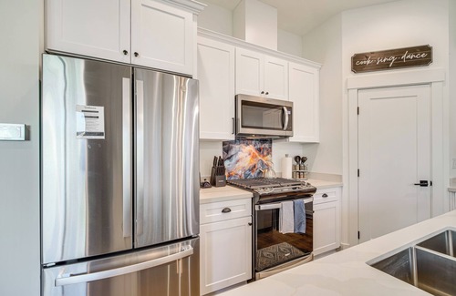 Discover a charming getaway in Eagle Point, OR, at this 3-bedroom, 2.5-bath vacation rental. Located on the Eagle Point Golf Course — designed by architect Robert Trent Jones Jr — the newly built townhome offers a cozy space to unwind after golfing, hiking, or tasting local varietals. Enjoy a tour of the Harry & David factory or an afternoon of jet boating or rafting the Rogue River. Then, return to grill a meal on the patio.