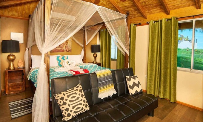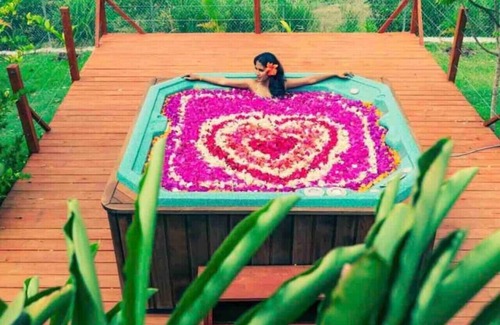 A Romantic Jacuzzi and Deck was recently added so couples have the perfect escape with their own private view. The Jacuzzi is big and can hold up to 8 people. The The Cottage also comes with a 40" flat screen Smart TV, a private fully-functioning Kitchenette and a large wrap-around covered porch, complete with it’s own amazing views of the lush forest & distant Caribbean Sea.