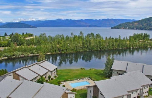 Located on Lake Pend Oreille adjacent to Schweitzer Mountain, enjoy the lake/pool/long-bridge view from the living room, sparkling pools, tennis courts, and open-air dining gazebos with grills- right outside your door!
