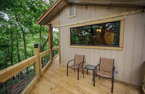 If you are ready for quiet retreat – Eagle’s View is waiting on you! This cute little two bedroom cabin is perched on a hillside near the Beavers Bend State Park entrance. Slow Summer evenings are easy to spend relaxing and grilling on the large deck, hidden high in the limbs of surrounding trees. This comfortable getaway is ideal for couples and small families looking to spend time enjoying all Beavers’ Bend and Hochatown have to offer. You’ll find a kingbed, bunk bed, and a pair of comfortable couches inside, ready to welcome you home after a long memorable day. Because the cabin is outfitted with linens, towels, a ready to cook modern kitchen, large fire pit, and cable TV on the large flat screen; it could be a snap to spend all your time at the cabin – relaxing and simply getting away from it all. But this ideal location means you aren’t far from several restaurants, live music, outdoor activities, and the lake. Whether this vacation includes all the kids and family dog, or is just you and that special someone, memories are waiting to be made at Eagle’s View.