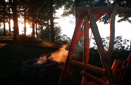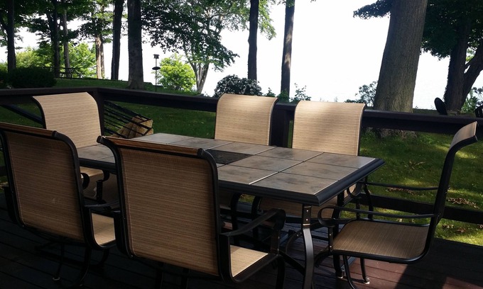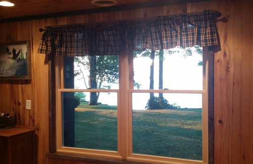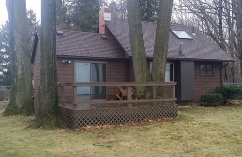Eagle View Cottage, is a gorgeous 2 bedroom 1 bath cottage . Eagleview sits upon a bluff overlooking Lake Erie. Our cottage is newly remodeled with genuine hickory hardwood floors through out, a blend of red pine paneling and white pine logs give our cottage a rustic look and a unique feel . The kitchen is complete with all brand new appliances, granite counter tops and all the amenities of home. Our kitchen is filled with everything you"ll need to cook a great meal. coffee maker, toaster and crockpot are among some of the appliances. The master bedroom located in the loft area includes a queen size bed, window air conditioners are available in both bedrooms. The down stairs bedroom has a set of bunk beds ,full size on the bottom and twin on the top. The bathroom is complete with plenty fresh towels and a hair dryer. A 32inch flat screen tv is located in the family room for your enjoyment. We also provide wifi as well. We have a brand new Maytag washer and dryer in the cottage , there is no reason to go home with a suitcase full of dirty clothes. We also provide the laundry soap and fabric softner . Enjoy cooking your dinner on our Weber gas grill located on the beautiful deck overlooking the lake. Watch the sunset from our Adirondack chairs while having a campfire. We are sure you"ll find the cottage to be both peaceful and breathtaking. We are located just a half mile from the mouth of Elk Creek the premier place to steel head fish. Walnut boat launch is just 8 miles from our home. If you'd like to take a fishing charter , well than look no further, Capt Matt ( fully licensed by the US Coast Guard and insured) is ready to take you aborad his 23 ft North River boat to fish for walleye and perch! If you choose to stay Oct thru Dec a layout duck hunt might be what you are looking for. Please contact us directly for booking and pricing for both the cottage and the charter service. We'd love to have you stay with us! P.S. if our calendar is full check out Bald Eagle Bluff, our other cottage just 2 doors down from the Eagle View.