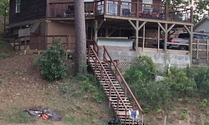 Cabin is right on water with breath taking views of the lake. Enjoy some much needed time with all the nature and trees. The cell signal is low but we now have internet. Relax, chill, read a book, watch movies from our extensive DVD collection or wi fi TV, enjoy the lake, fish, swim, boating (bring your own).