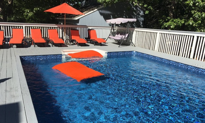 East Hampton weekend retreat. Beautiful, fully furnished, contemporary vacation home nestled in the woods. Located about 10 minutes from East Hampton and Amagansett. Great for entertaining. 20x40 foot Heated pool surrounded by decks and trees. (Guest must pay for gas used by pool heater. ) Large property and back yard.