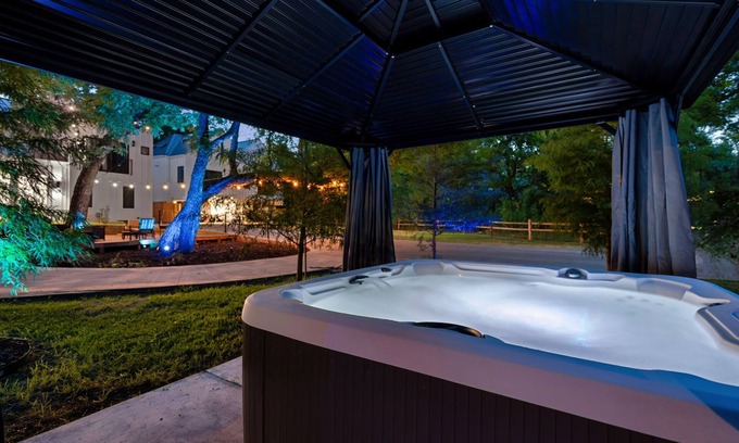 This three story home is one half of a duplex building, and guests will have the whole unit B with a rooftop patio to themselves. This place has an awesome shared outdoor ground level lounge area too, with a gas fireplace table and BBQ grill. There's also a shared outdoor hot tub. Inside, you'll find 6 bedrooms, a spacious living area, a fully equipped kitchen, and a billiards table. Plus you'll be in East Austin, less than 2 miles from the Texas State Capital.