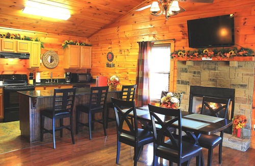 🍁Smoky's Lodge is a gorgeous 2 bedroom cabin decorated with a Fall Season theme all year long…because who doesn’t love FALL!! Designed for relaxation, romance, and fun. Newly updated and located in the desirable Pine Haven community off Wears Valley Rd with late fall and winter views of Bluff Mountain. The cabin is less than 5 minutes (2.6 miles) from the Parkway off Light #3 in Pigeon Forge, less than 7 miles to Dollywood and only 12 miles from Gatlinburg and Ober ski resort. If you're looking for the ideal log cabin getaway experience, Smoky's Lodge is just the place you're looking for. Where else can you stay and feel like a kid again spending the night in a TREE HOUSE?