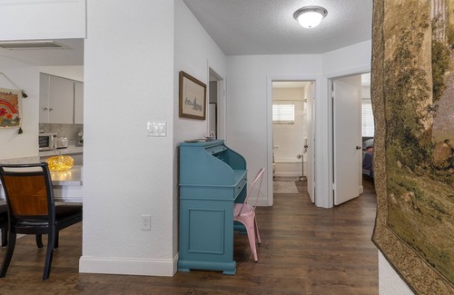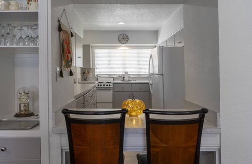 Walking distance to all Historic Downtown Mount Dora has to offer; shopping, antiquing, cafes, and restaurants! This oversized two bedroom, two bath sleeps 4 guests and includes all the amenities of home including fresh linens, coffee, cream, sugar, basic spices and cooking oil. You'll also enjoy a private screen patio, perfect for morning coffee or a glass of wine in the evening. This property also features a swimming pool which is a shared space with other tenants/guests on the property. Covered parking included. This is a LakeVibesOnly property. We have 5 additional vacation rentals with over 130 Five Star Reviews. Weekly & Monthly Discounts availble.