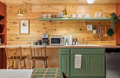 Echo Lake is a newly renovated (Summer 2024) motel-style unit, located on the side of the main house at Pemi Cabins and neighboring Unit #16. While not directly on the river, this updated studio-style cabin offers convenient access to the property’s communal outdoor amenities and all the natural beauty of the White Mountains.