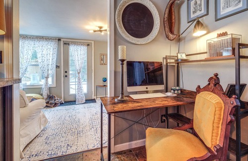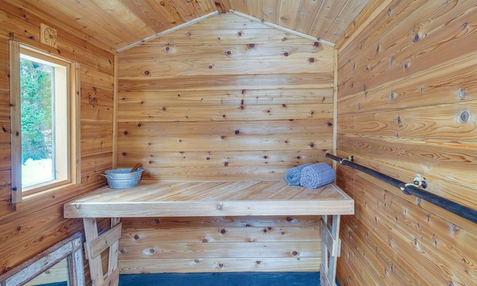 Whether you want to hit Crystal Mountain’s powdery slopes in the winter or lounge on the beach at Interlochen State Park in the summer, this central and cozy cottage is your perfect home base! After hiking a nearby trail, decompress or do hot yoga in the electric sauna or put on a record and dine by the fireplace. Nestled along a peaceful golf course, this 1-bedroom, 1-bath Interlochen vacation rental also features a fire pit for s’mores, a well-stocked kitchen, and a convenient private office.