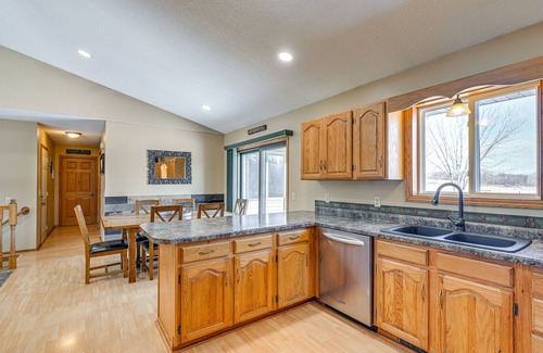 Experience the perfect balance of nature and comfort when you retreat with loved ones to this spacious vacation rental home in Cadott, WI. Perfectly nestled along the riverfront, this 5-bedroom, 3-bathroom property offers tranquil water views from the backyard. When you're ready to go out, hike through Lake Wissota State Park, take the kids to Irvine Park Zoo, or attend a lively concert at Rock Fest. Return to the home in the evening and gather in a living area of your choice for a movie night.