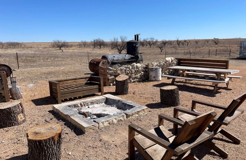 Center of the eclipse pathway across central Texas. Come stay in the true Texas Hunting Camp Lodge of Premier Wingshooting's Quail Camp, Not-so roughing it at its finest!!! This 5 bedroom with a loft hunting camp lodge features 2 full bathroom, a full kitchen, a wood burning stove, and amazing grassland view from the courtyard. Courtyard is complete with firepit, 3 picnic table, a 4000 pound smoker(for all you outdoor culinary needs) and a crystal-clear-milky-way-bright-night-sky! Host will be on site for arrival and orientation and possible for the entire stay. Come enjoy the big Texas Sky and take in the fresh country air as you take in 1000's of acres of views. The kitchen is complete with a refrigerator with icemaker, oven and microwave, dishwasher, all cookware and all dining ware. While the lodge is not air conditioned, the cool April temps are more than wonderfull. With cool nights, the wood burning stove is perfect along with the courtyard firepit which is perfect for sipping bourbon and roasting some marshmellows. The camp itself will sleep cot up to 22 with double beds sleeping 2 and with 4 cots in the loft. The television will have service of dish for television or possibly internet conection for your streaming services. This is a one of a kind chance to have a wonderful adventure and take in the Eclipse of April 8th. This availability is for 4/5/2024-4/8/2024 with days possibly available prior to 4/5/2024 if needed.