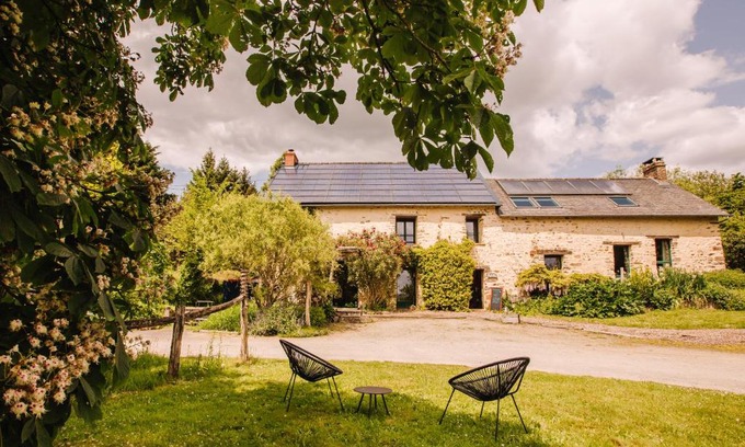 Located in Saint-Mʼhervé, Ecolodge La Belle Verte provides free WiFi, and guests can enjoy free bikes, a garden and a terrace. Some accommodations include a balcony with garden views, a fully equipped kitchenette and a shared bathroom with shower. The lodge offers a continental or vegetarian breakfast. A grill is available on site and hiking can be enjoyed within close proximity of Ecolodge La Belle Verte. Rennes–Saint-Jacques Airport is 37 miles away.