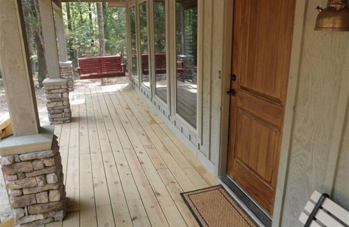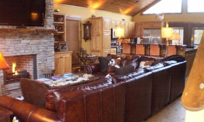 Home features 4 BR, 3 baths and WiFi. 2 master bedrooms upstairs both have king size beds while 1 master includes large TV and DVD. 2 bunkrooms downstairs feature 8 twin bunks. Greatroom features huge rock fireplace and large flat panel TV and DVD. Both girls and boys bunkrooms have TV and DVD. Large fully featured professional grade kitchen with indoor dining space for 10. Large deck and screened porch with outdoor dining for 8. Front and back porches have porch swings for morning coffee or a good book.