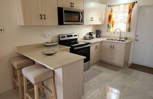 Find serenity when you stay at this centrally-located cozy new bungalow in a family-friendly 24hr gated community with security cameras, seaviews, open patio, Netflix, air conditioners, solar water heater, all your essentials & warm Jamaican delights. Only 5 minutes from the renowned Puerto Seco Beach ⛱. 50 mins from the airport and 30 mins from Ocho Rios cruise port 🛳, the world famous Dunns River Falls and much more. **Add ons such as private chef, taxi and car rental can be available**