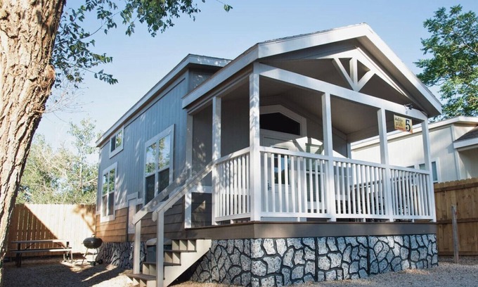 Balanced Rock Cabin #05 is your cozy desert retreat just 1.5 miles from downtown Moab! Inspired by the iconic Arches formation, this tiny home sleeps up to 4 with a king bedroom, queen pull-out sofa, and fun loft space. Enjoy a full kitchen, private deck, and all the essentials for a comfy stay. Perfect for families, friends, and adventurers looking to explore Arches, Canyonlands, and beyond!