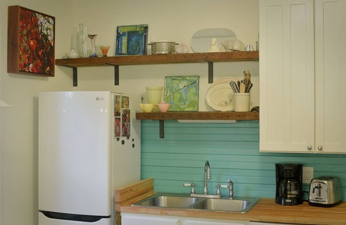 THE HOME. We took great care to preserve the history of our home while making it very comfortable and functional. The living room has breathtaking views of our beautiful oaks, camelias and the marsh. It features comfortable seating, TV with DVD and Netflix. The fireplace and the exposed beams on the ceiling add character. The kitchen is renovated & well equipped for food prep. The kitchen features a gas range, dishwasher and beautiful butcherblock countertops. There is space in the pantry and fridge for you to store your items. There is also a mini-fridge in the mudroom as well that guests can use for drinks and overflow items (conveniently located next to the kitchen). The dining room features a large bar with stools that can easily seat 6. Downstairs you will enjoy a comfortable private bedroom with a new queen bed next door to a full bathroom featuring clawfoot tub original to the house.