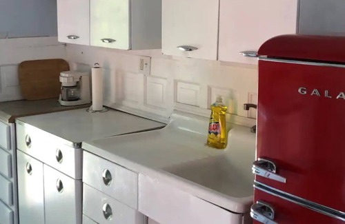 Quite a unique experience awaits here. A 1903 historic home with an efficiency apartment. The 1950's retro kitchen compliments the living room/bedroom. The oak Murphy Bed folds into the wall when not in use. The bathroom is a modern tiled bath with huge shower. Located right downtown on a residential street, the house faces the large Catholic Church and downtown restaurants, winery, bookstore, gift shops, and bars. Enjoy walking to the coffee shop or encountering small town hospitality.