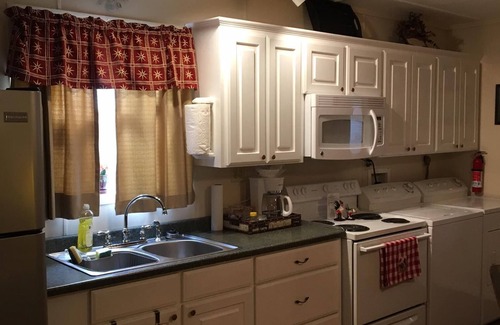 Efficiency apt. located at the back of 2 acres . This is a private apt that is quiet and designed with rest and relaxation in mind. This unit is in sight of our house . There is a neighborhood around us, but woods between us and them. It is close to town but with the feeling of being further out. This is a fully equipped apt. with full kitchen, washer and dryer, wifi, multi tv channels. We have covered parking with patio and gas grill for your use. Outdoor pit when in season. Queen bed with memory foam. Your check in will be at 3:00pm and check out at 10:00 so as to get apt. fresh and clean and ready for next guest.