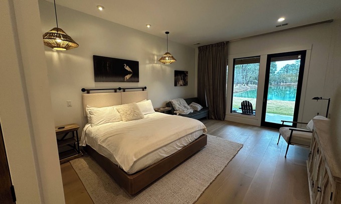 This charming cottage suite offers a cozy 1-bedroom retreat with 1 king bed and a twin futon. Enjoy the excellent amenities like heating, AC, and WiFi. The bathroom features a dreamy shower, makeup mirror and hairdryer for your convenience. Includes a mini kitchen with Nepspresso pixie (pods, sugar/creamer provided), microwave, ice maker and mini-fridge. Experience the magic of our 500+ acre estate with multiple lakes, gorgeous live oaks and bountiful wildlife. A great place to unwind and call homebase while you're away. We hope you enjoy your stay!
