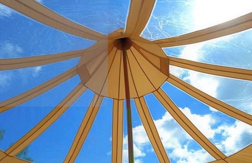 RAIN - A traditional tipi has a large opening at the top. There is no way to seal the tipi completely and it is possible that drop of water will enter.