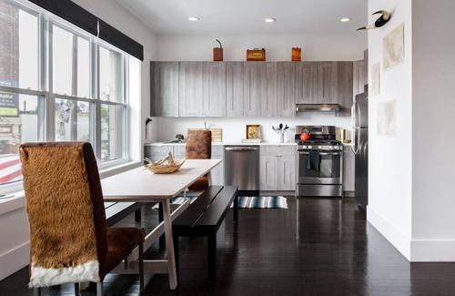 El Motel Dos in Logan Square that sleeps 12 with grill and backyard patio is located in Logan Square. El Motel Dos in Logan Square that sleeps 12 with grill and backyard patio provides accommodation, featuring Wellness Facilities, Barbecue/Outdoor Cooking, Parking, among other amenities. This House features Wellness Facilities, Barbecue/Outdoor Cooking, Parking, to make your stay a comfortable one.