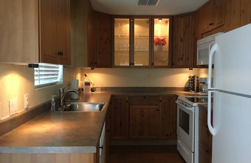 This remodeled 3-bedroom, 2-bath house is located within walking distance of Arizona State University and Mill Avenue, which is the heart of downtown Tempe. City bus routes and a light rail system make this location quite desirable. The property is close to Sun Devil Stadium, Grady Gammage Auditorium, Tempe Center for the Arts and Tempe Town Lake, which is the home of the annual Ironman Triathlon and many other events. The AZ Cardinals stadium is a 30-minute drive away so this property is a perfect location for AZ Cardinals games and the annual Fiesta Bowl. If interested, the owner often has extra AZ Cardinals tickets. The nightlife of this college town makes this home ideally located for those who want to vacation in a quiet neighborhood close to where the action is. Since the property is very centrally located in the metro Phoenix area, you can hang out in Tempe or go anywhere in the metro Phoenix area very quickly and inexpensively. Executive as well as designer golf courses are nearby. A short drive will take you to numerous spring training facilities. The Phoenix Zoo is less than five miles away. The living room, bedrooms and the backyard are equipped with cable television. The interior of the house is fully tiled and newly furnished with contemporary furniture. A swimming pool -- heated during the cooler months except for December and January -- accentuates the covered patio and gas grill in the backyard. When heated, the pool heater is set at 88 degrees but, if the outside temperature gets too cool, the pool temp may not reach 88. That doesn't happen often but it does happen occasionally. There are wet suit tops in the laundry area for your use. Those will help. If you are bringing dogs to the property, please try to keep them out of the pool as dog hair can seriously clog the filtering system. The laundry room is located next to the pool. The property is also conveniently located only 4 miles from Phoenix Sky Harbor International Airport. You will see and hear an occasional plane while sitting at the pool, but that is actually quite enjoyable. With the house's dual pane windows, you will not hear airport noise when inside. We call this property "El Norte" because it is our only property on the north side of the street. El Norte can accommodate 6 guests but, if you need to find lodging for more, we own another vacation rental across the street. You can see it at VRBO.com/395773. It also has a pool. You will not be charged a cleaning fee at any of our properties. El Norte can accommodate a family gathering but cannot accommodate a large event. If you are planning to host an event of any size, please clear it with the owner at time of booking. Please note: Because we have a pool with no special pool fence, we are not permitted to rent to children under the age of 6. Thanks for considering our property. Shirley and Pete