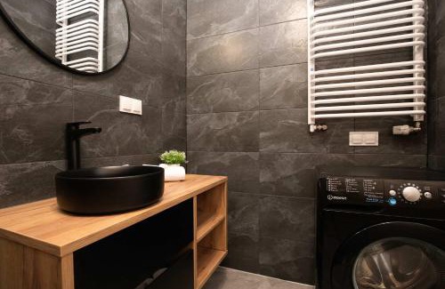 Elegancki Apartament Blisko Rzeki w Gdańsku z Parkingiem by Noclegi Renters features accommodations in the center of Gdańsk, a 5-minute walk from European Solidarity Centre and 0.7 miles from Gdansk Central Station. Guests staying at this apartment have access to a balcony. There's a sun terrace and guests can use free Wifi and free private parking. This apartment includes 1 bedroom, a living room and a flat-screen TV, an equipped kitchenette with a dining area, and 1 bathroom with a shower and a washing machine. Towels and bed linen are available in the apartment. The property has an outdoor dining area. Guests at the apartment will be able to enjoy activities in and around Gdańsk, like cycling. Popular points of interest near Elegancki Apartament Blisko Rzeki w Gdańsku z Parkingiem by Noclegi Renters include Museum of the Second World War, St. Nicholas Roman Catholic Church, and Zuraw Medieval Port Crane. Gdańsk Lech Wałęsa Airport is 7.5 miles from the property.