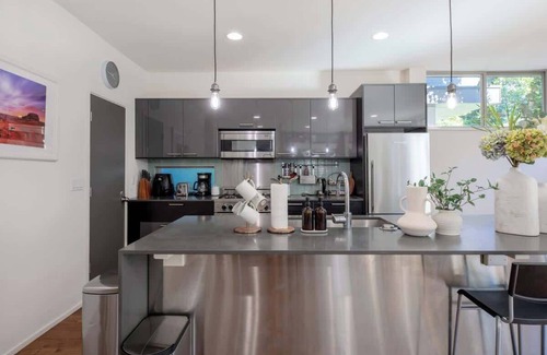 - High-end kitchen appliances, cookware, silverware, serving wares, coffee & tea provided