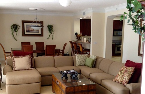Welcome to paradise! This beautiful three bedroom, two and a half bath end unit condominium sleeps 6 people. Master bedroom has a king bed with direct access to the water front balcony. Second bedroom has a queen bed and the third has two twin beds. Brand new flat screen HD TVs in living room, master and queen guest! Gourmet kitchen has granite countertops, stainless steel appliances and a great selection of cookware and utensils. Open floor plan with wet bar and formal dining room. Enjoy your morning coffee or afternoon cocktail with the gentle ocean breeze on the wonderful screened in water front balcony. This unit is the model for all of Bay Harbour and is professionally decorated and furnished.
