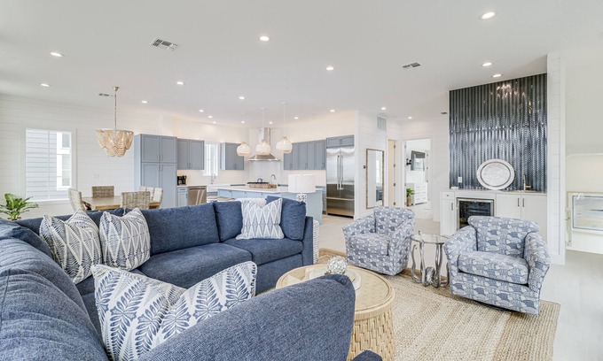 Welcome to your dream getaway in the luxurious Palmilla Beach and Golf Resort in Port Aransas, TX! This incredible, newly built home boasts tasteful decor and upscale furnishings throughout, creating a modern coastal vibe that is perfect for large groups and multiple families. With six spacious bedrooms, each featuring en-suite bathrooms and smart TVs, everyone will enjoy their own private retreat. The home is designed for entertainment, featuring a game room with shuffleboard, a Switch gaming system, and a ping pong table, ensuring fun for all ages.
