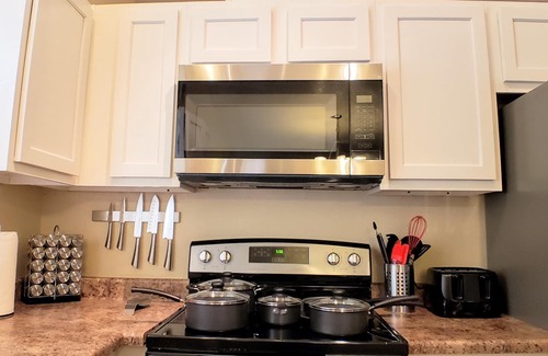 ⢠Beautiful kitchen with dishes, cookware, silverware, and nearly anything you need to make a delicious meal