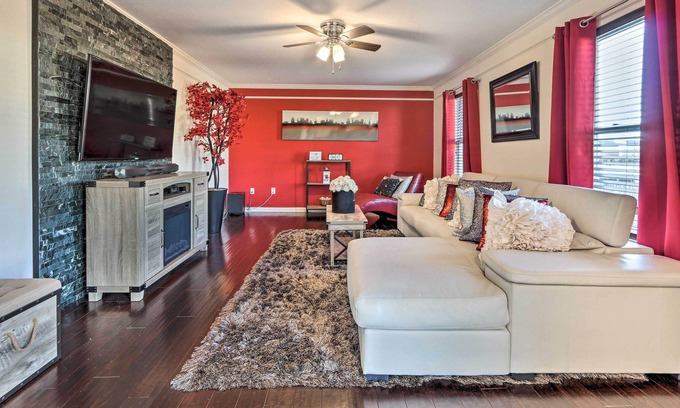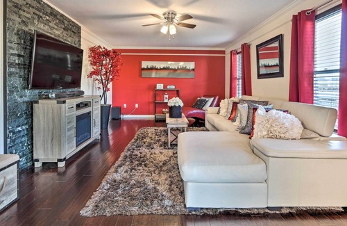 Gather your loved ones and visit Columbus, Ohio where you can stay at this spacious and uniquely furnished 4-bedroom, 3.5-bathroom vacation rental. Shoot some hoops in the backyard, play a game of Pac-Man in the game room, or work out in the private fitness room. For more family fun, take a short drive to Otherworld, Marcus Pickerington Cinema, or Downtown Columbus. Return to the home in the evening and lounge underneath the gazebo, by the living room’s electric fireplace, or at the wet bar.