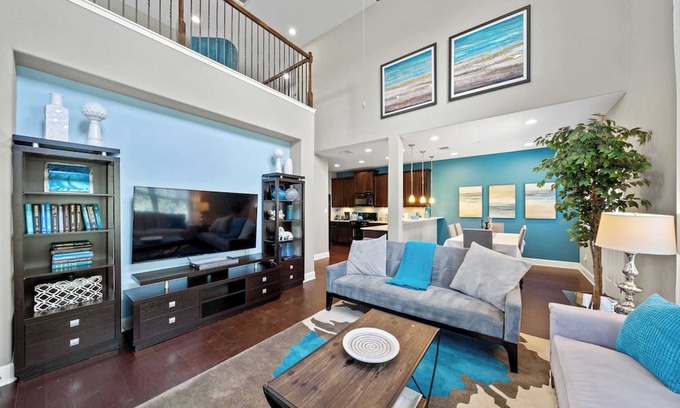 • Revel in the grandeur of a soaring living room ceiling, filled with natural light for a bright and airy atmosphere