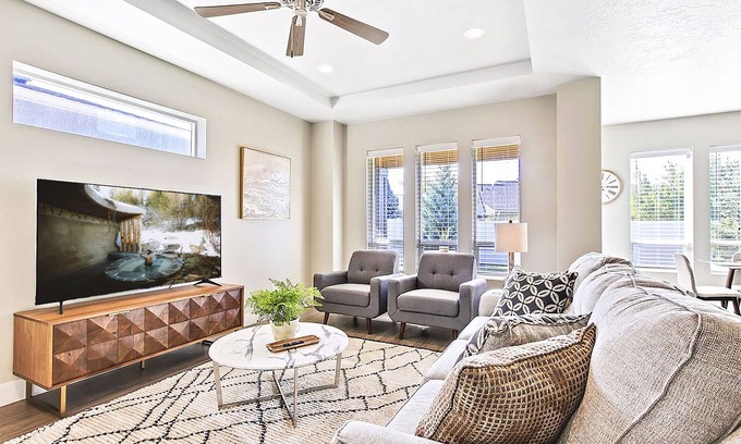 Unwind in our centrally located, elegant retreat, just minutes from Meridian, Eagle, Nampa, and Boise area's major attractions and entertainment. Impeccably clean, adorned with elegant décor, ambient with family-friendly games. Enjoy the convenience of 24/7 keyless entry, a private yard, a washer/dryer, and free garage parking. Unleash your culinary skills in our well-stocked kitchen. Complimentary 300+ Mbps Wi-Fi for seamless remote work. Please add us to your Wishlist and we look forward to hosting you soon!