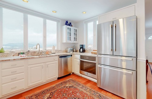 This sophisticated, kid-friendly home boasts three floors and multiple dens and living rooms - an ideal space to host a large family gathering without stepping on each other's toes. Set the kids up with a movie or a board game, then open up a bottle of wine and make yourselves comfortable around the roaring gas fireplace.