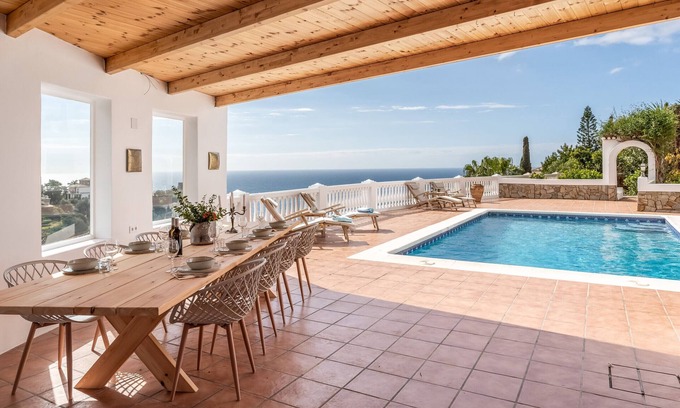 Exclusive villa with magical sea view and sun all day!Welcome to this unique and exclusive villa, perfectly located with a breathtaking sea view and sunshine from morning to evening. Here you enjoy several generous terraces that offer both sun and shade — choose what suits your time. The large pool is located in the best sun position and is surrounded by spacious living areas, perfect for relaxation, swimming and unforgettable dinners under the stars.The entire villa is tastefully decorated with unique furniture and works of art that create a harmonious and elegant atmosphere. Every detail is carefully selected to give a sense of tranquility and exclusivity. The peaceful and private location guarantees total privacy — here you are completely undisturbed, without any transparency.The villa comfortably accommodates up to 8 guests, divided into four spacious bedrooms and three stylish bathrooms. It features air conditioning in all bedrooms and living rooms for comfortable indoor temperatures.The large living room has direct access to one of the many terraces, and the fully equipped kitchen offers stunning views of the Mediterranean Sea. BBQ area on the terrace that makes it easy to enjoy long meals outdoors with family and friends. The villa is located above the popular Playa Cabria beach, where you will find three fantastic and much-loved restaurants. The walk there takes about 15 minutes, or only 3 minutes by car.The centre of Almuñécar is 5 km away and offers a wide range of shopping, restaurants and bars. Take the opportunity to visit the charming old town with historic ruins and the beautiful castle overlooking the city. Here you will also find several beaches and a long promenade to explore.For those who want to be active, there are plenty of opportunities for padel, golf, water sports and hiking in both the mountains and along the coast. This villa is the obvious choice for those looking for a luxurious and relaxing holiday in a beautiful and peaceful environment.We look forward to welcoming you to Casa los Arboles!PROPERTY RULES• Bookings where all guests are under 25 years of age are not permitted.• This property does not accommodate groups of young people.• Smoking indoors is strictly prohibited. A cleaning fee will apply in case of violation.• Events are not permitted within the property or anywhere on the premises.