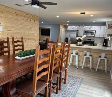 A recently renovated vacation home, Elegant Spacious 3 Bedroom Home fenced back yard and Garage offers accommodations in Denison. The vacation home, set in a building dating from 1957, provides free Wifi and free private parking. Outdoor seating is also available at the vacation home. Providing a patio and quiet street views, the spacious vacation home includes 3 bedrooms, a living room, flat-screen TV, an equipped kitchen, and 2 bathrooms with a walk-in shower and a bath. Towels and bed linen are provided in the vacation home. The accommodation is non-smoking. Guests can also relax in the garden. Dallas Love Field Airport is 70 miles away.