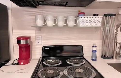Welcome to "Elegant Square" a newly furnished open air concept studio with a chic, modern flair nestled in the heart of trendy Passyunk Square. This unit has a fully equipped kitchenette. This very unique living area has a queen size bed and 43" flat screen smart tv. The bathroom is exquisitely done in marble tile with a walk in shower.