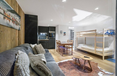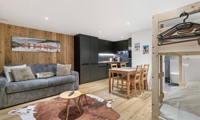 Ce studio chaleureux et pratique est conçu pour accueillir confortablement jusqu`à 4 personnes. La pièce commune comprend un canapé-lit et un lit superposé, parfaits pour une famille ou un petit groupe. Une cuisine entièrement équipée est à disposition, offrant tout le nécessaire pour préparer vos repas. La salle de bain moderne, avec douche et toilettes, complète ce logement pensé pour répondre à vos besoins et assurer un séjour agréable.