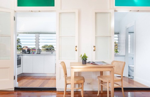 This is a gorgeous studio apartment with old-world elegance and ample living space. The kitchen is particularly inviting with a wall of windows capturing natural light. The rest of the studio offers comfortable bedding and seating and a fireplace for chilly nights. It has a fantastic location near cafes, the Marrickville Markets and leafy parks. It’s also a short walk from Petersham Station and its surrounding restaurants and bars. You can reach the Sydney CBD within 15 minutes via train.