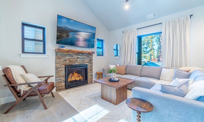Experience modern comfort and serene mountain living in this beautifully designed 3-bedroom, 3.5-bathroom retreat just steps from Lake Tahoe. Perfect for families, couples, or groups, this home offers breathtaking views, elegant interiors, and all the amenities needed for a relaxing escape.