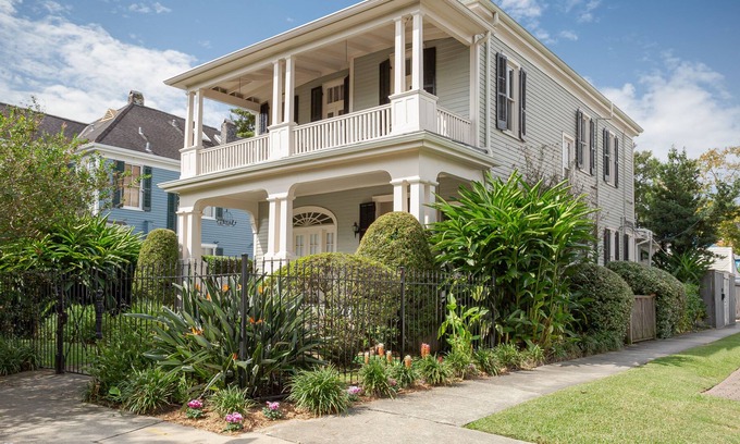 125 year old elegant Uptown New Orleans home, 4 bedroom, 2.5 bath home with pool, lush gardens and cabana. Sleeps 8. Just 3 blocks off of St. Charles Ave. Walking distance to Tulane and Loyola Universities, Yulman Stadium and the the streetcar. Just blocks to Audubon Park, the River Bend, Oak and Maple streets. This Victorian home has a great outdoor space, swimming pool and great neighborhood! Great for families (with kids) and big groups, couples, business travelers. 17STR-10737