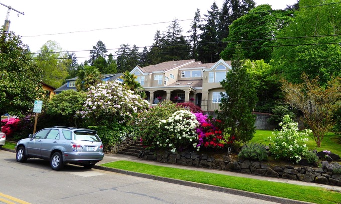 There's a video of the house on this website which will give prospective guests a good idea of the layout. This lovely home, built in 1926 and extensively updated, sits overlooking the University of Oregon. Fairmount Blvd.,one of the most prestigious streets in Eugene, is a short walk from the University and the Matthew Knight Arena. (Great for events including the U of O woman's and men's basketball!)