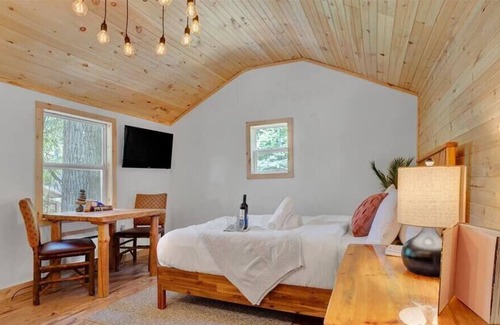 Have a relaxing stay in this charming cabin with modern amenities and tasteful décor, perfect to nestle up in on a snowy day as you watch the flakes fall gentle onto the pine trees around you.